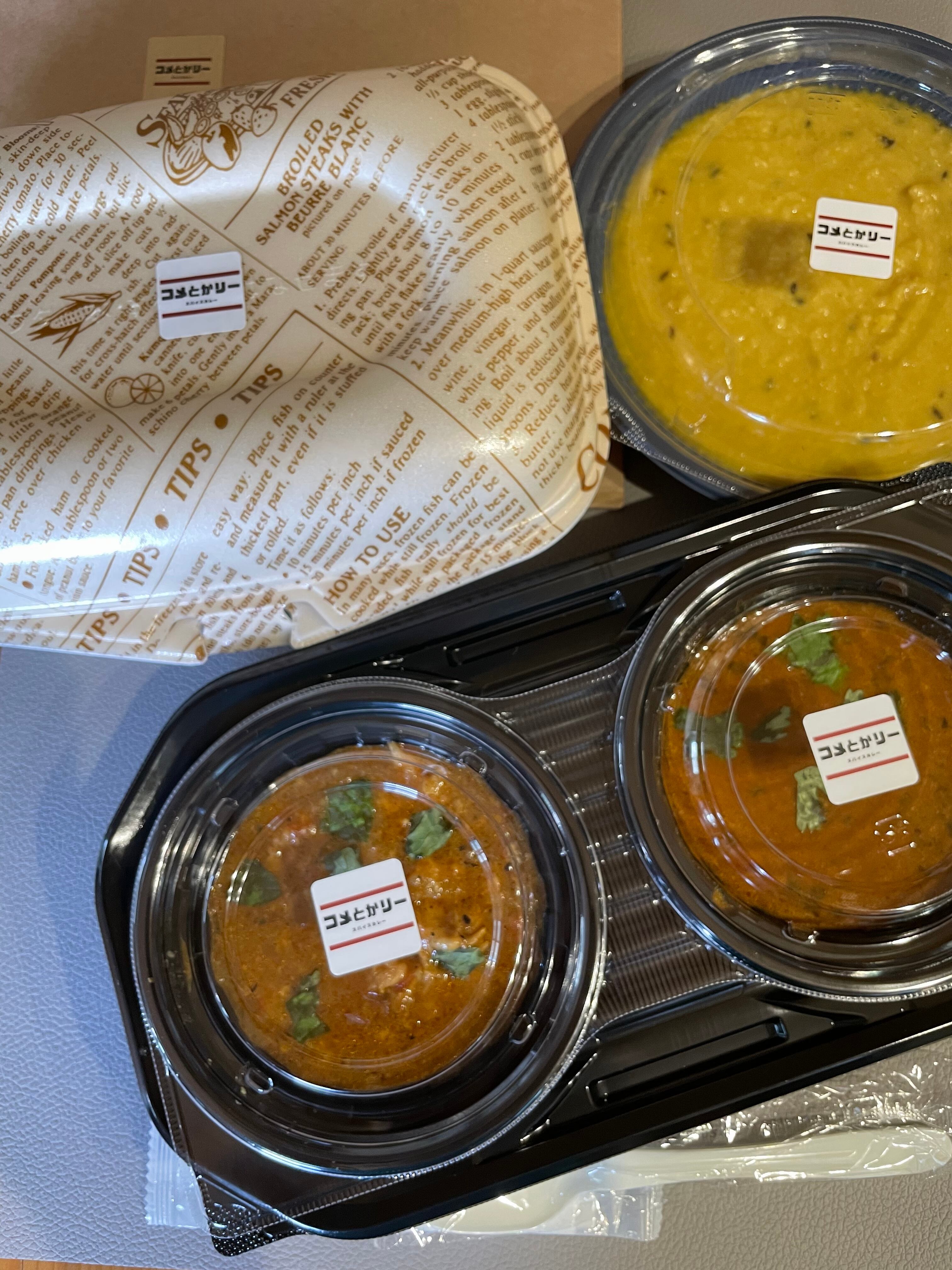 出汁と酸味を効かした海老カレー 柿チキンカレー